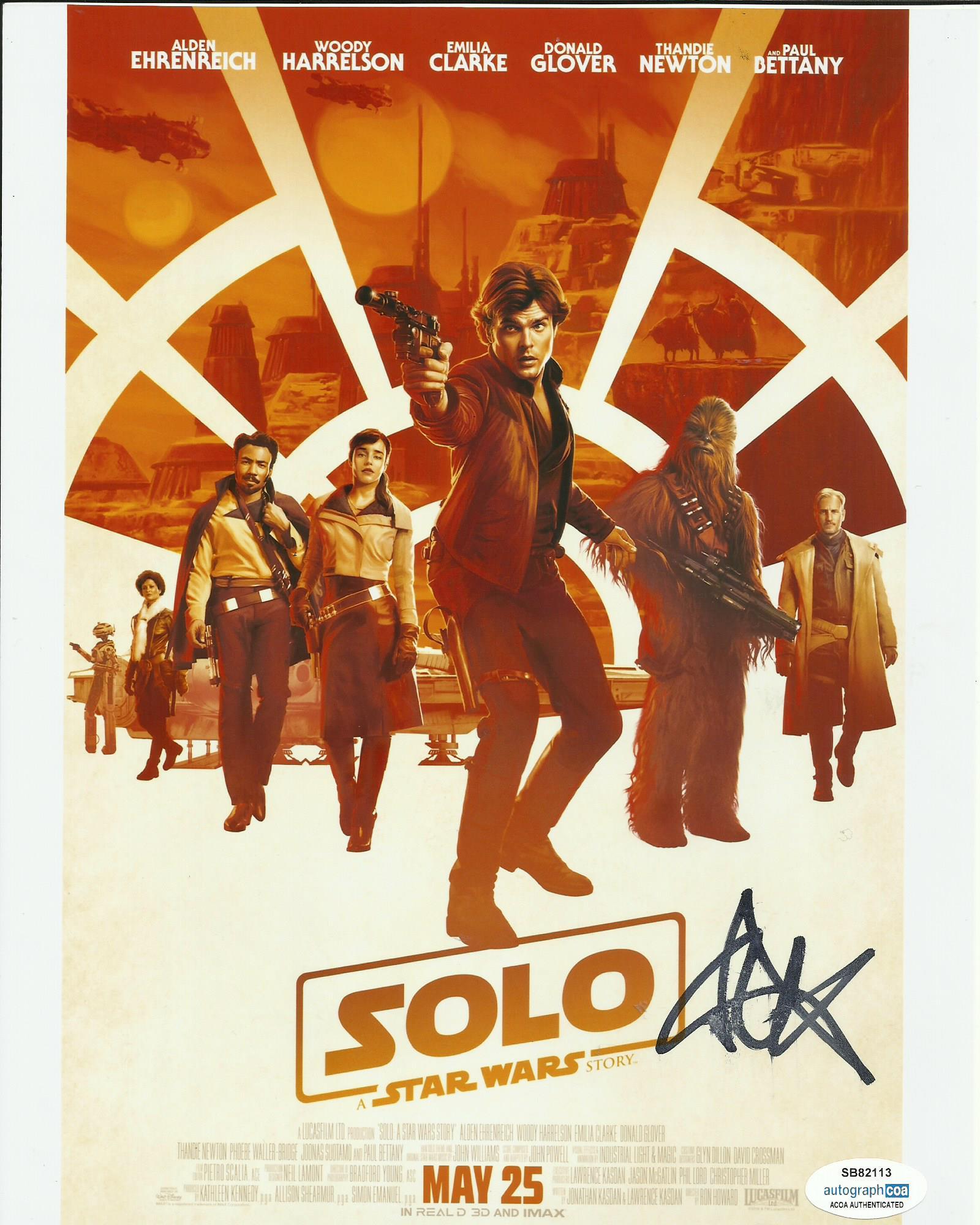 ALDEN EHRENREICH SIGNED SOLO 8X10 PHOTO ALSO ACOA (2) SLIGHT SMUDGE